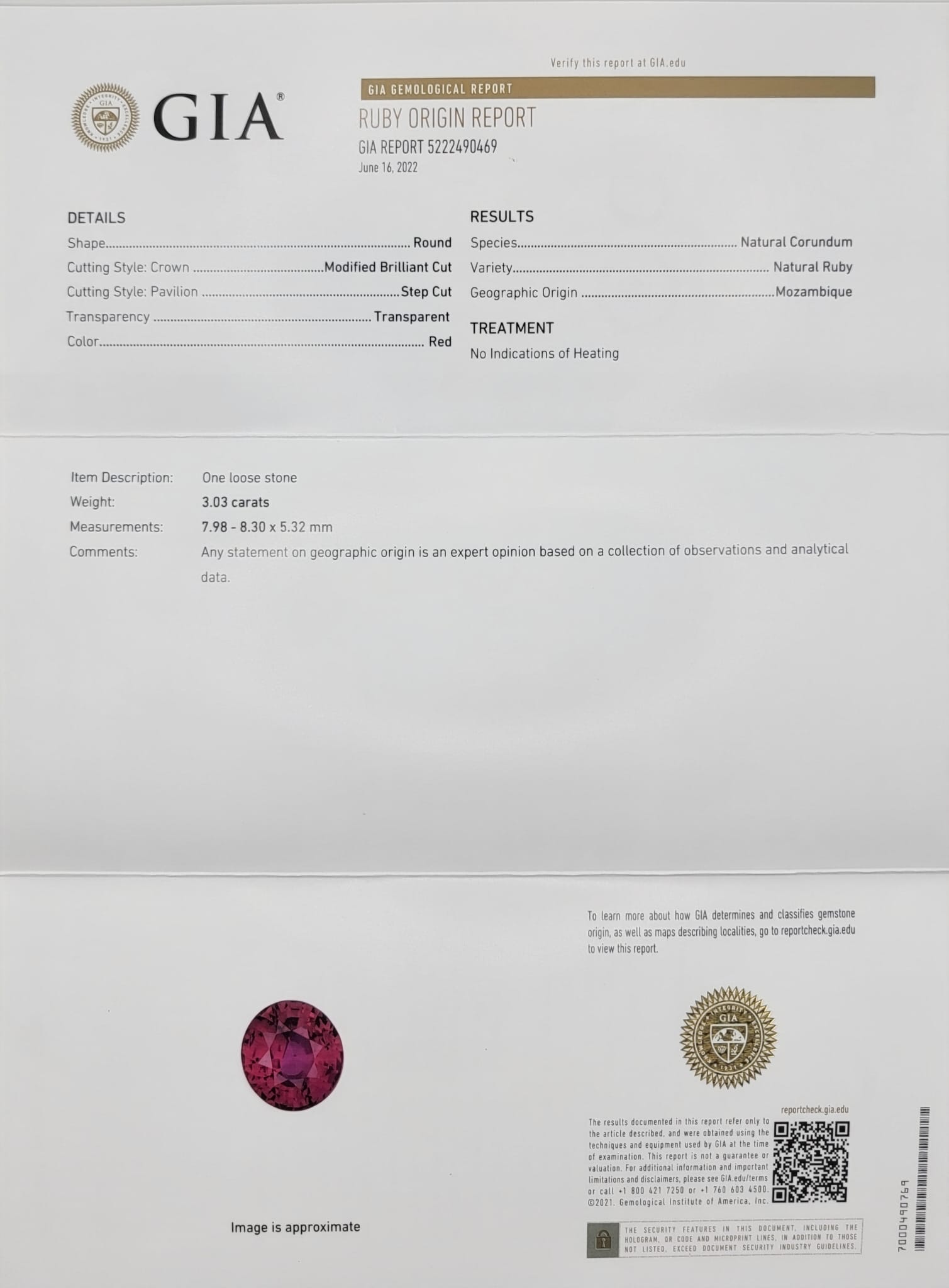 •GIA REPORT #: 5222490469