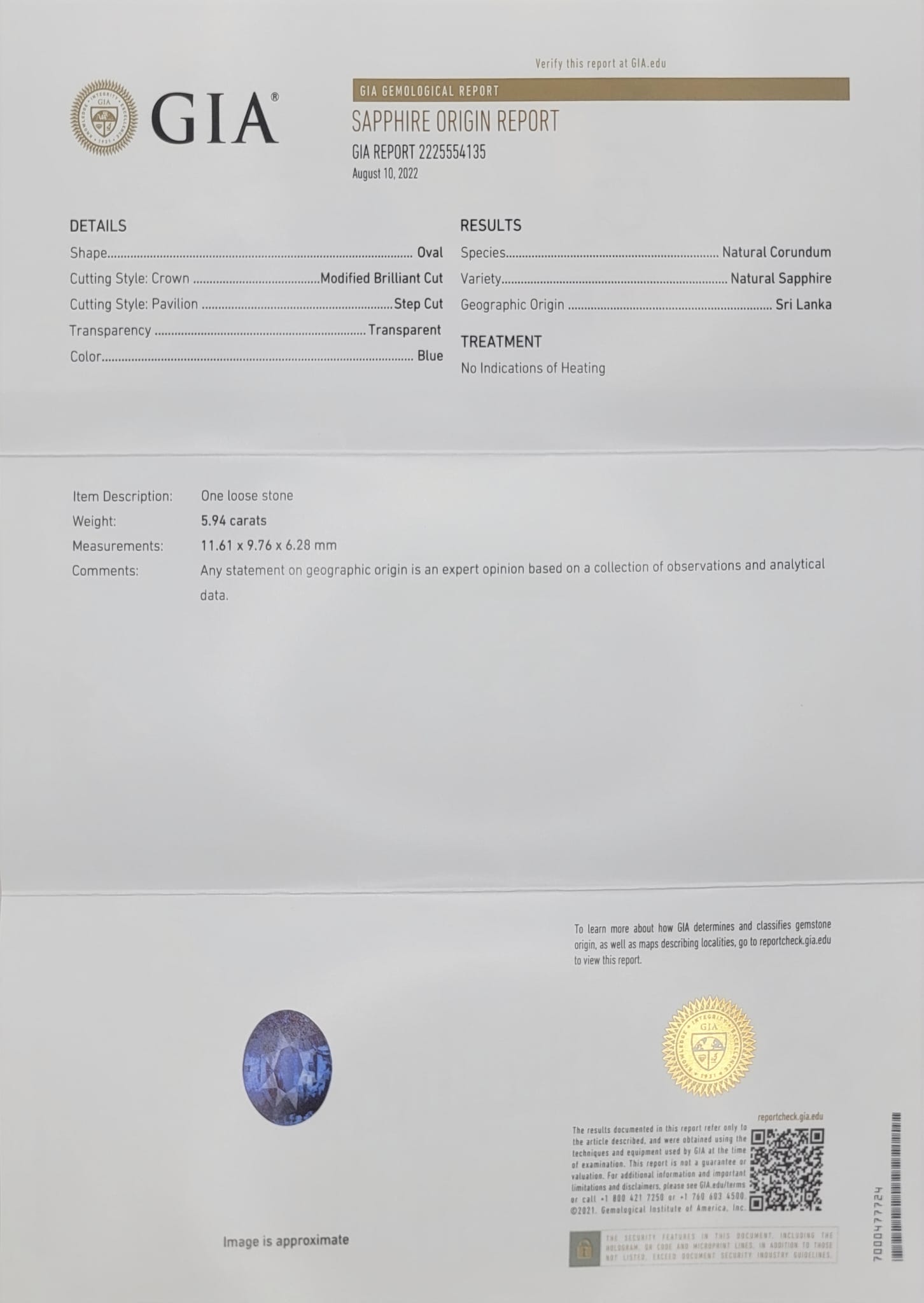 • Weight: 5.94 carats